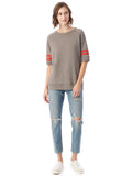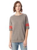The short-sleeved crew neck and sweatshirt material make this ultra-soft top a great choice for working out or just hanging out. Raglan sleeves and arm detailing give it a vintage sporty style.