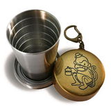 A telescoping steel shot glass with a hand finished, antique brass cap that collapses down to fit in your pocket! Always be prepared with The Gentleman's Portable Shot Glass, by Trixie & Milo. Conveniently sized to fit into your pocket, with a chain and clasp to hang it from your key ring - take it with you wherever you may roam.