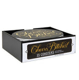 Combining the fine arts of drinking and swearing, this set of 15 coasters features festive toasts in foil-stamped calligraphy-plus classic cocktail recipes on the backside. Sturdy, reusable, and suitable for all drinking occasions, these eye-catching coasters will keep guests entertained and tabletops dry at the same time.