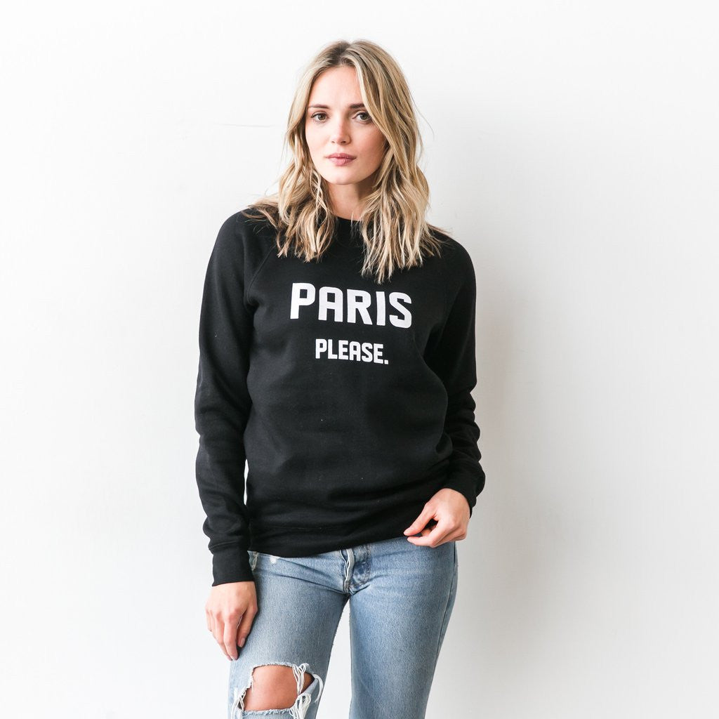 The "Paris" long sleeve crew neck sweatshirt, collect all our locations including "Tokyo Please", and "London Please". We fit to be cozy.
