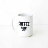 "Coffee Now Please" mug, because sometimes you just need your coffee. This big beauty is 15 ounces of premium high quality ceramic and tailor made for Monday mornings.