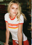 For you adventuring babes... our 70's inspired, DAYTRIPPER shirts are printed with a pre-faded ink on soft white and red ringer tees.