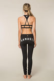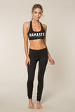 Namaste and live in Spiritual Gangster's new athletic sports bra featuring a white 'Namaste' graphic and an exciting new racer back.