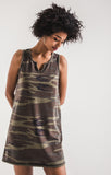 You all asked, so we answered. Crafted in a baby French Terry, this camp tank dress features a notch neckline, raw-edge trim, and a bold all over cam print for a look that will forever be in style.