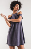 Sun's out, shoulders out. Crafted from our baby French Terry, this open-shoulder dress features a ribbed neckline and a relaxed fit made for everything under the sun.