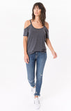 Dare to bare (your shoulders) in this cold-shoulder top. Crafted from our Signature Burnout fabric, this tee is complete with raw-cut edges and a scoop neck for a fun shoulder shimmy.