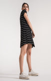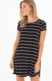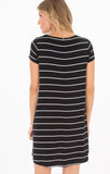 Striped to perfection, our premium Sleek Jersey T-shirt dress features a scoop neck, short sleeves, and a relaxed fit.