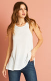 Made to flatter every body type, this irresistibly comfortable tank is crafted from a lightweight ribbed knit. Featuring a high neckline, a racerback with back pleat, exposed raw edge seam detailing and straight hemline.