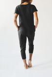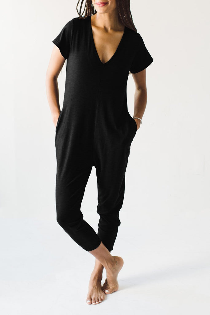 In a Midnight Black rayon from bamboo and cotton blend, this romper needs no zipper, no buttons... or introduction - it's that fabulous! It's spacious, stylish, ad fits in all the right places. Looking for a new staple item? Look no further.