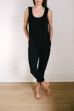 Available in Midnight Black and Kaitlyn Rose rayon from bamboo and cotton blend, this romper doesn't have our typical middle seam, but does have the same effortlessly chic vibe!  The frills on the shoulders give an added touch of feminine fun and the slight turn up on the leg hem give it that extra "Je ne said quo!"  Oh... and YES, there are pockets... we wouldn't do you like that!