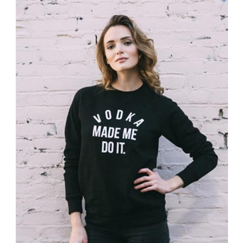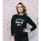 The "Vodka Made Me Do It" long sleeve crew neck sweatshirt. We fit to be cozy.