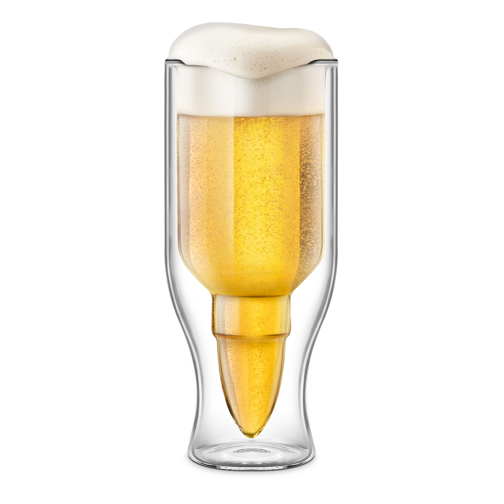 The .50 Cal Bullet Beer Glass is the stylish way to drink your beer. This beer glass is made of hand-blown durable borosilicate glass & crafted to perfection. Designed with double-wall glass so your warm hands will not take the chill off you beer. Go & enjoy a cold one with our .50cal Bullet Beer Glass