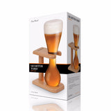 Also known as the long glass or Cambridge yard this quarter yard beer glass features a long shaft and shaped with a bulb at the bottom for smooth drinking. The included oak stand helps to keep the glass standing safely and securely upright. This glass holds up to 13.5 oz (400ml) of your favourite brew.
