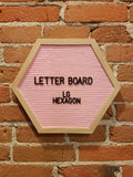 Our premium Pink felt letter board is made from wood. The wood itself is made of light beige color with some natural wooden patterns. The letter boards are perfect additions to your bedroom, living room, kitchen, patio, store, office, parties and more. Great for all age groups, either for work or for fun. Can be part of your wall gallery. Perfect backdrop for baby milestones, small menus, and quotes. Great for social media purposes. Each set comes with white letters, numbers, and symbols. There is also a white pouch to store your letters in.