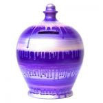 The original money pot. This pot is not only pretty to look at, it is a great way to save money! Handcrafted in Italy, and painted by hand in England. This pot is done in a wash of purples and pinks, a great way to finish this pot in style.