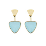 Live among the stars with these celestial gems. These triangular inspired ear jackets will have you feeling sublime. Earrings are handmade from fine pewter and is plated in 14 karat gold.
