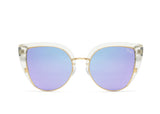OH MY DAYZ features a totally catty plastic wing with contrasting metal to round out the details. Stay blushing in rosy frames featuring gold revolver lenses, be bold in black and gold frames featuring smoke lenses, or stay in the clear featuring transparent and gold frames featuring purple revolution lenses.
