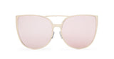 These playful oversized cat eye sunnies feature mirrored lenses, a double bridge, adjustable nose pads and a metal frame.