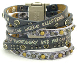 A melody of inspiration, elegance, and fashion, the You Are Beautiful Cuff Bracelet is the perfect piece to accessorize. Signature 6-cord cuff design with an arrangement of 10 moving and life-changing scripture passages.
