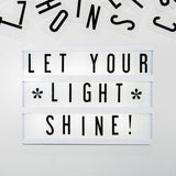 Slide interchangeable plastic letters and characters to write imaginative phrases. Perfect for home and wedding decor, milestone announcements, photoshoots and just about everything you have in mind. The lightweight design allows for easy transport and is battery operated for portability. USB cable included for continuous power.