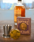 A telescoping steel shot glass with a hand finished, antique brass cap that collapses down to fit in your pocket! Always be prepared with The Gentleman's Portable Shot Glass, by Trixie & Milo. Conveniently sized to fit into your pocket, with a chain and clasp to hang it from your key ring - take it with you wherever you may roam.