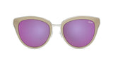 These glam cat eye sunnies feature a retro chic plastic frame with metal rim accents and temples, mirrored lenses and adjustable nose pads.