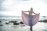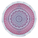 Pink/purple ombre roundie with white tassels - 100% cotton, measures 72" diameter