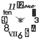 Stamped metal numbers mount to the wall with adhesive to create wall clock of any size.