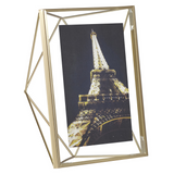Add new dimension to your photo displays with this prismatic, 5x7" wire frame, in which a photo floats between two panes of glass. Can alternately sit on the desk or be hung on the wall.