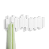 Accessible and decorative for the front hall, this deceptive multi-hook looks at first glance like an idle row of sticks, until you notice that some flip down to become hooks for your coats, bags and other accessories!