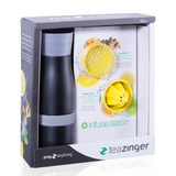 Now you can create your own perfect tea blends by combining your favourite teas with fresh flavours.  The Tea Zinger is ideal for sleeping teas, hot or iced, and includes a specially designed built-in grater for infusing ingredients like ginger, turmeric, orange peel, and more; the new grater makes sure all of the zest is contained with the bottom compartment.  Our signature citrus press is also included so you can add fresh citrus to your Tea Zinger.  Add orange juice to your tea for bold pop of flavour, or start your day with a cleansing hot lemon water.  A removable tea steeper basket is included for loose leaf tea.