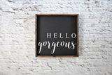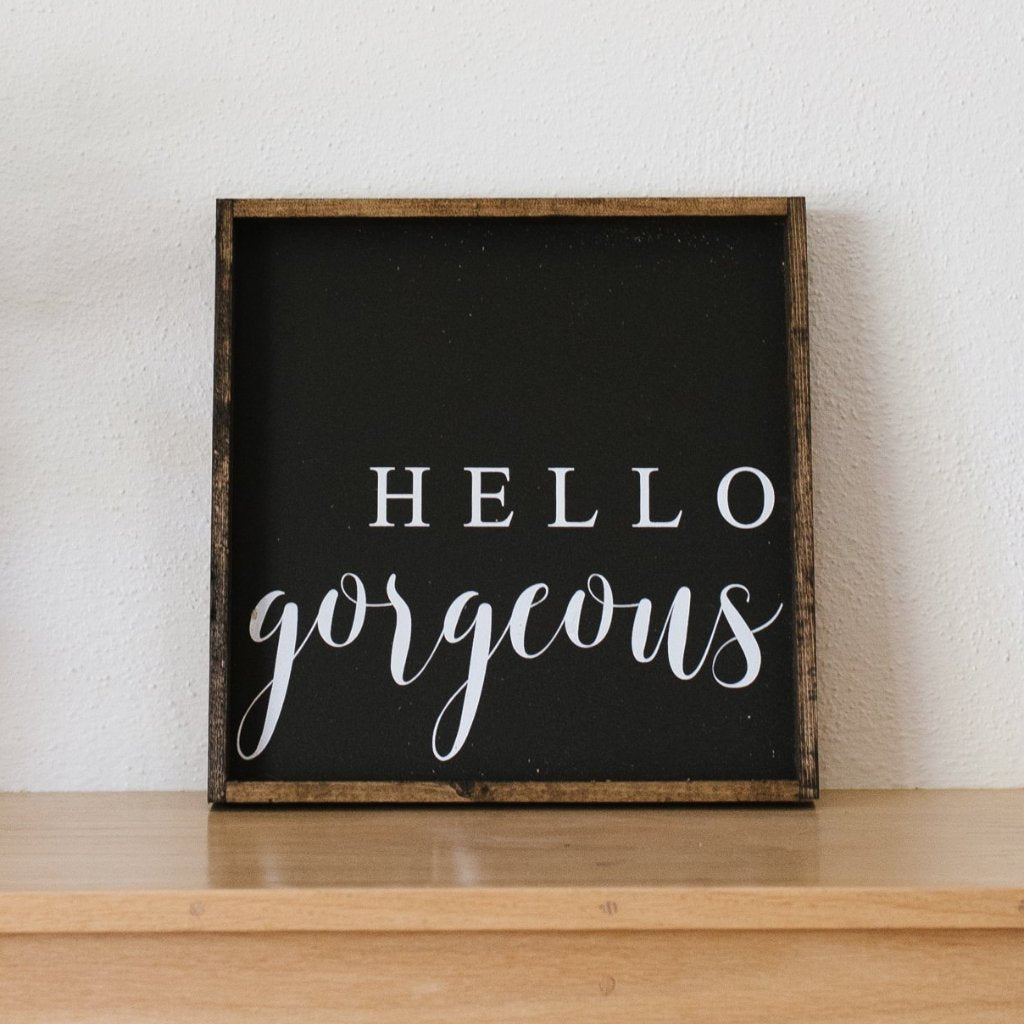 Hello Gorgeous! Isn't that something everyone wants to hear? This sign is great on her side of the bed, or in the bathroom. It is small enough that it can easily fit on a shelf. Don't forget to check out our matching "Hey Handsome" sign!