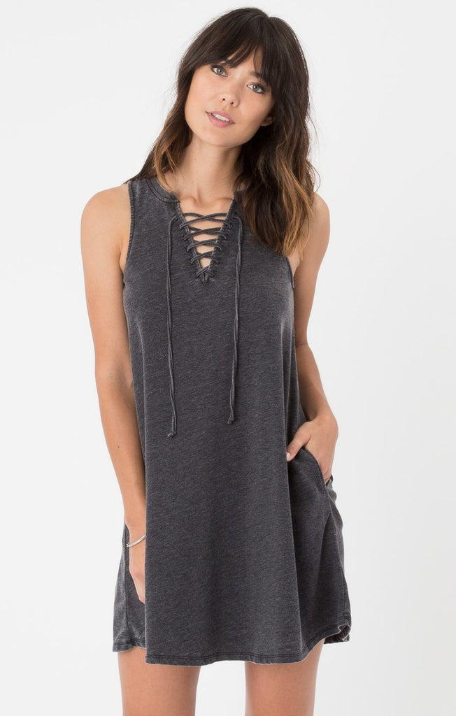 The look-good-feel-good All Tied Up Dress is made to flatter from every angle. Crafted from our signature burnout Baby French Terry, this sleeveless dress features a lace-up neckline, side pockets and an easy swing silhouette.