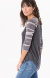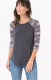 Hit it out of the park in our baseball tee crafted from our Signature Burnout fabric. Featuring 3/4 contrast raglan sleeves in camo print, a rounded neckline, and a relaxed fit.