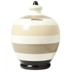 The original money pot. This pot is not only pretty to look at, it is a great way to save money! Handcrafted in Italy, and painted by hand in England with grey, black and beige stripes.