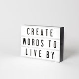 Slide interchangeable plastic letters and characters to write imaginative phrases. Perfect for home and wedding decor, milestone announcements, photoshoots and just about everything you have in mind. The lightweight design allows for easy transport and is battery operated for portability. USB cable included for continuous power.