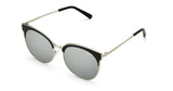 Calling all vintage lovers. MIA BELLA features round reflective lenses set in an understated metal frame with winged cat-eye arches in classic black or translucent blush colour ways.