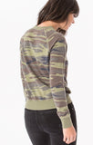 This is not your boyfriend's camo crew. This baby French terry knit sweatshirt features a burnout camo print, long raglan sleeves, and a ribbed trim for the perfect summer-to-fall-piece.