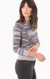 This is not your boyfriend's camo crew. This baby French terry knit sweatshirt features a burnout camo print, long raglan sleeves, and a ribbed trim for the perfect summer-to-fall-piece.